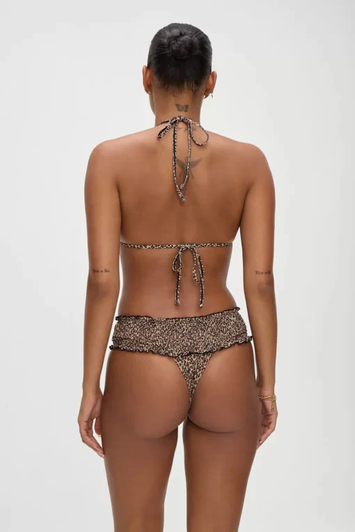 This may just be our most feminine bikini top with its flattering silhouette and Baby Leopard print. Featuring adjustable ruching at the center of the bust for a flirty finish. Details Skimpy bikini top with light support Adjustable halter and back strings Ruched details Fabric 86% Nylon + 14% Spandex Flat Swim Model S
