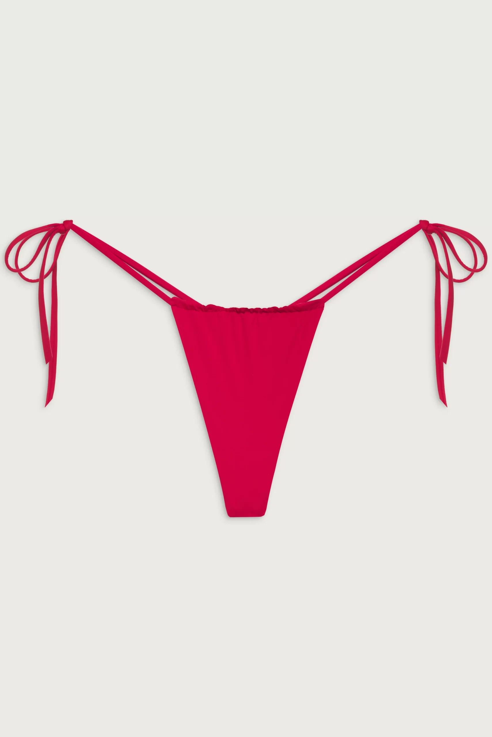 Sexy and slimming with a flirty ruched detail and dainty side ties, the Tia bikini bottom takes the ultimate skimpy silhouette to a new level. This bikini bottom is designed in our signature SoftSwim fabric. If you're looking for the ultimate beach set, you've found it with the Tia bottom and Lumia Bikini Top in True R