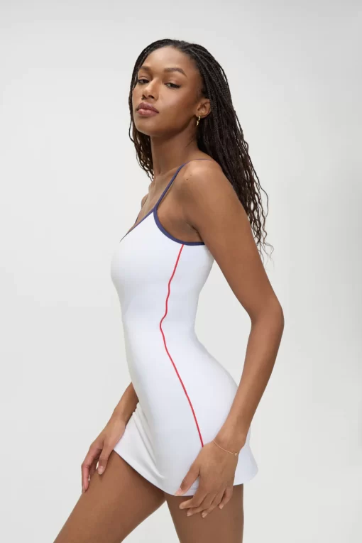 Look cute on and off the court in the Venus tennis dress, crafted from our new ultra-soft activewear fabric. Details Adjustable shoulder straps Compressive bodysuit layer underneath Scoop neck design Fabric 84% Polyester + 16% Spandex Brushed Tricot Model Size & Fit This style runs true to size Angela is wearing a